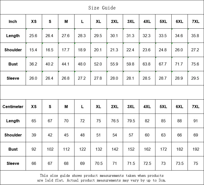 Centimeter | XS | S | M | L | XL | 2XL | 3XL | 4XL | 5XL | 6XL | 7XL |