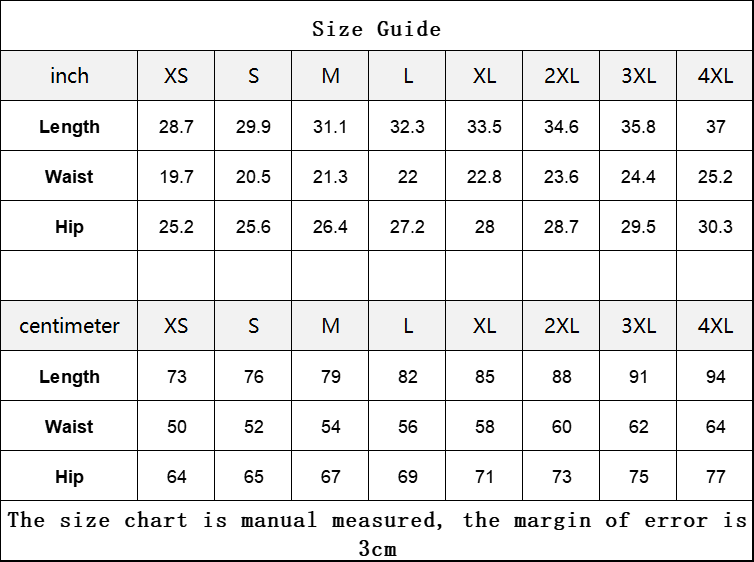 Waist | 19.7 | 20.5 | 21.3 | 22.0 | 22.8 | 23.6 | 24.4 | 25.2 |