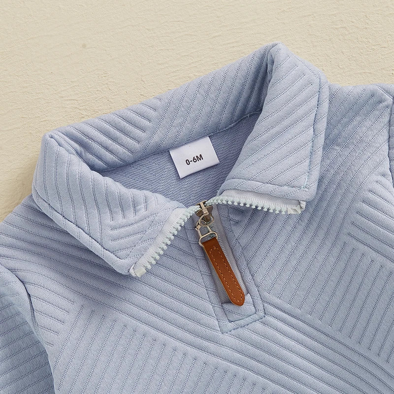 Baby Toddler Boys 2Pcs Autumn Outfit Set Long Sleeve Lapel Half Zip Up Pullover Solid Color Pants Set